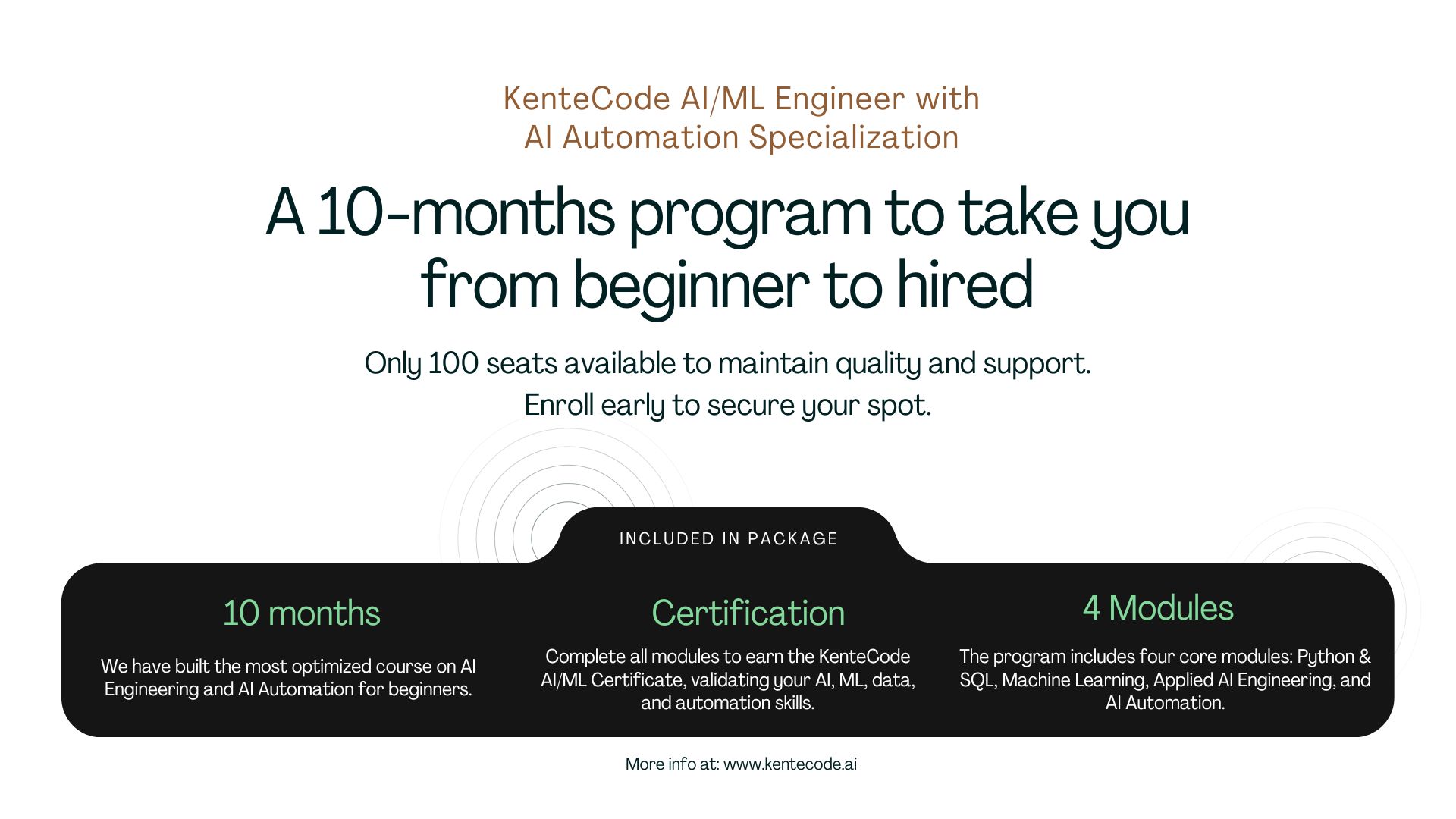 Whether you are starting from scratch or upskilling as a professional, KenteCode AI gives you a clear, structured path into AI, data, and automation.